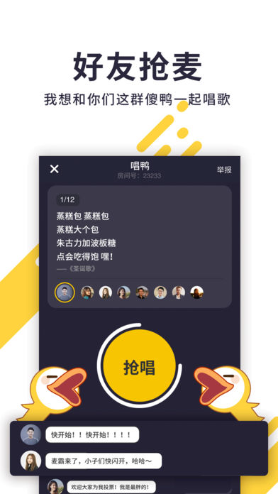 这是一款好用的趣味唱歌应用,高兴时就唱,悲伤时也要唱,寂寞时更是要唱鸭!在这里你能找到最适合自己的专场,跟朋友开房抢麦成为手速王者!欢迎下载使用吧。